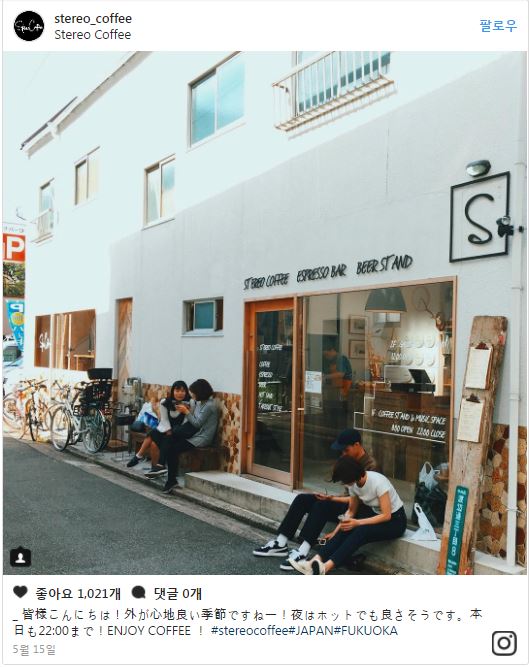 음악과 함께하는 ‘Stereo Coffee’ 이름에서도 알 수 있듯이 음악을 들으며 커피를 즐길 수 있는 카페다. 각종 LP와 빈티지한 소품들로 가득 채워 멋스러운 공간이 눈길을 끈다. 1층에는 스테레오 커피의 상징인 JLB 스피커가 있어 음악의 선율을 고스란히 느낄 수 있다. 특히 이곳의 특징은 의자가 없는 것. 2층에는 작은 갤러리같이 아트 작품들이 걸려 있어 커피를 마시며 자유롭게 둘러 볼 수도 있다. 스테레오 커피의 베스트 메뉴는 소이 바닐라 라떼와 커피 젤리 라떼. 싱글 오리진 커피도 인기가 좋다. Instagram : stereo_coffee add : 일본 〒810-0004 Fukuoka-ken, Fukuoka-shi, Chūō-ku, Watanabedōri, 3 Chome−8−3
